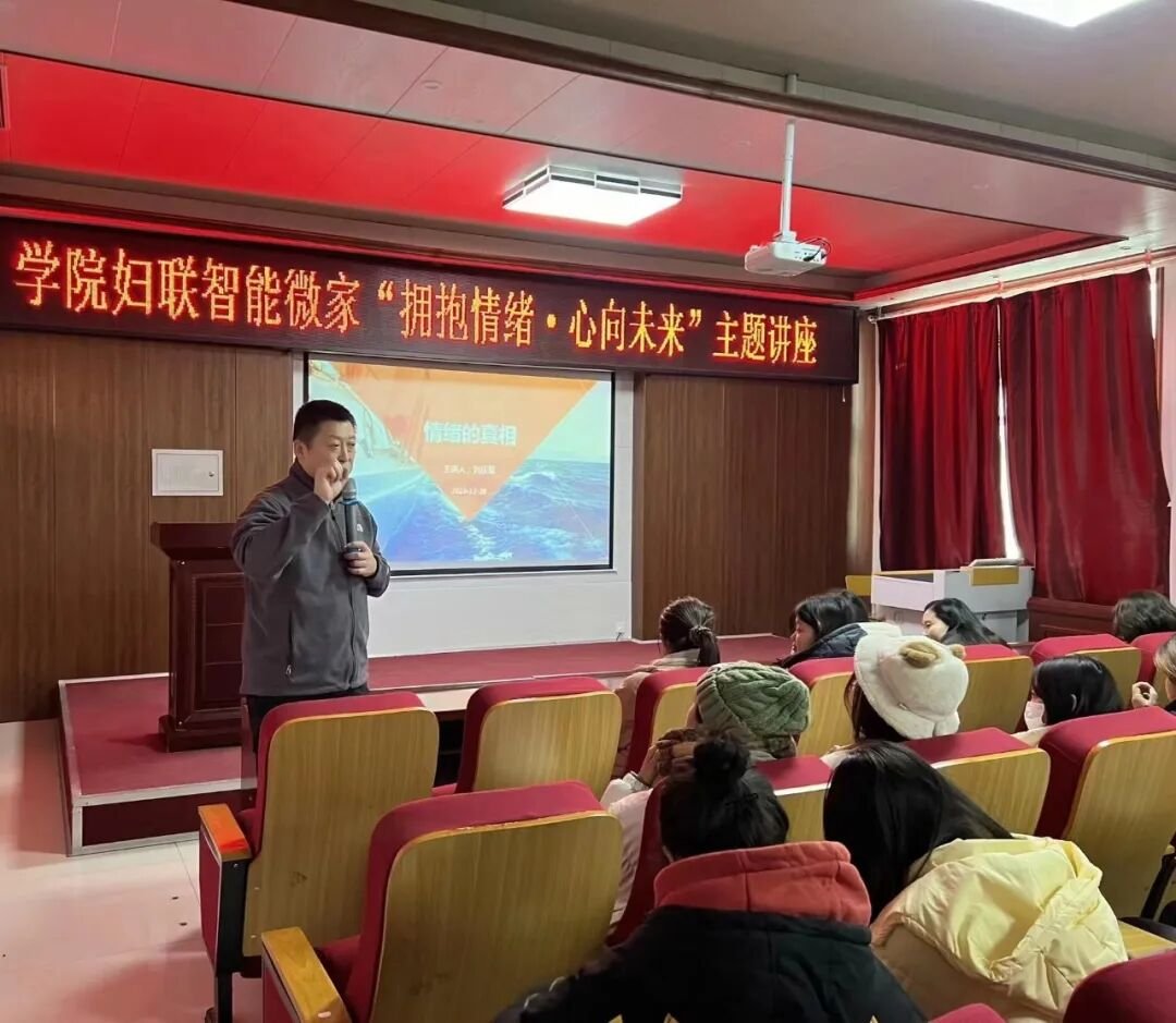 为帮助大家做情绪的主人,2023年12月28日,学院妇联智能微家在双创319会议室举办了“拥抱情绪·心向未来”主题讲座。讲座邀请石家庄市中小企业发展促进会刘庆章会长主讲。