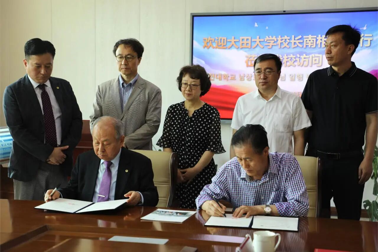 2025年5月28日,韩国大田大学校长南相豪率代表团莅临我校进行友好访问。我校党委书记李箭飞、校长梁国敬、副校长冯长英、副校长李阳、副校长曹罡、校长助理王秀敏、电子与通信学院院长高燕、人工智能学院书记于磊、国际教育学院副院长王相楠热情接待了代表团一行,并举行了座谈会及合作协议签署仪式。
