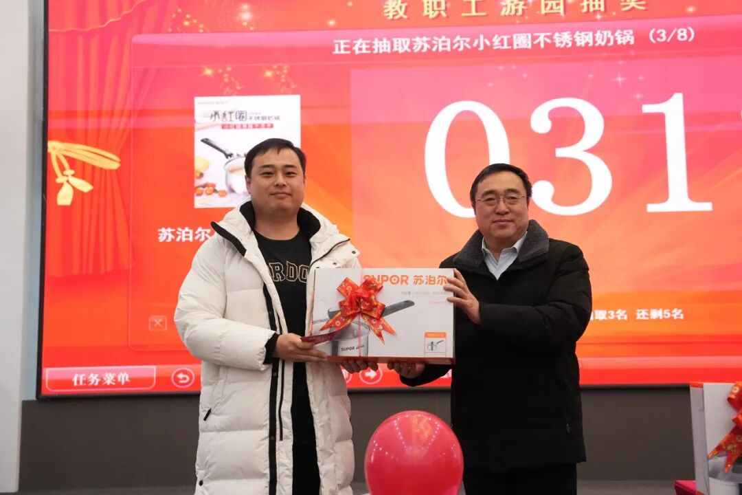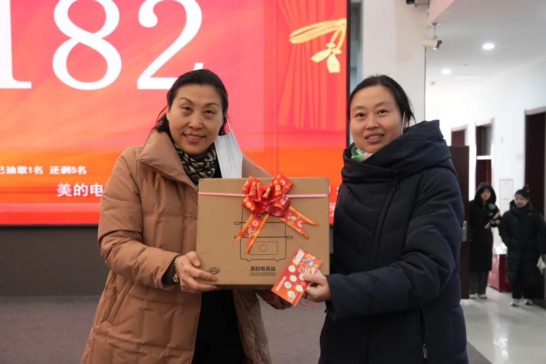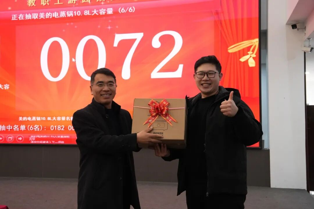 活动开始,首先由工会主席、学校副校长曹罡致辞:回顾这一年,学校旗帜鲜明、不忘初心,以党建引领学校各项工作走上了新的台阶;聚力发展提升教育教学质量,在人才培养上培根铸魂,开创了立德树人新局面;着力建设高质量教育体系,师资队伍越来越壮大,人才强校的优势日益彰显。新的一年任重道远,希望大家团结奋进再出发、全力以赴、勇于担当,共同开启学校高质量发展的新篇章。