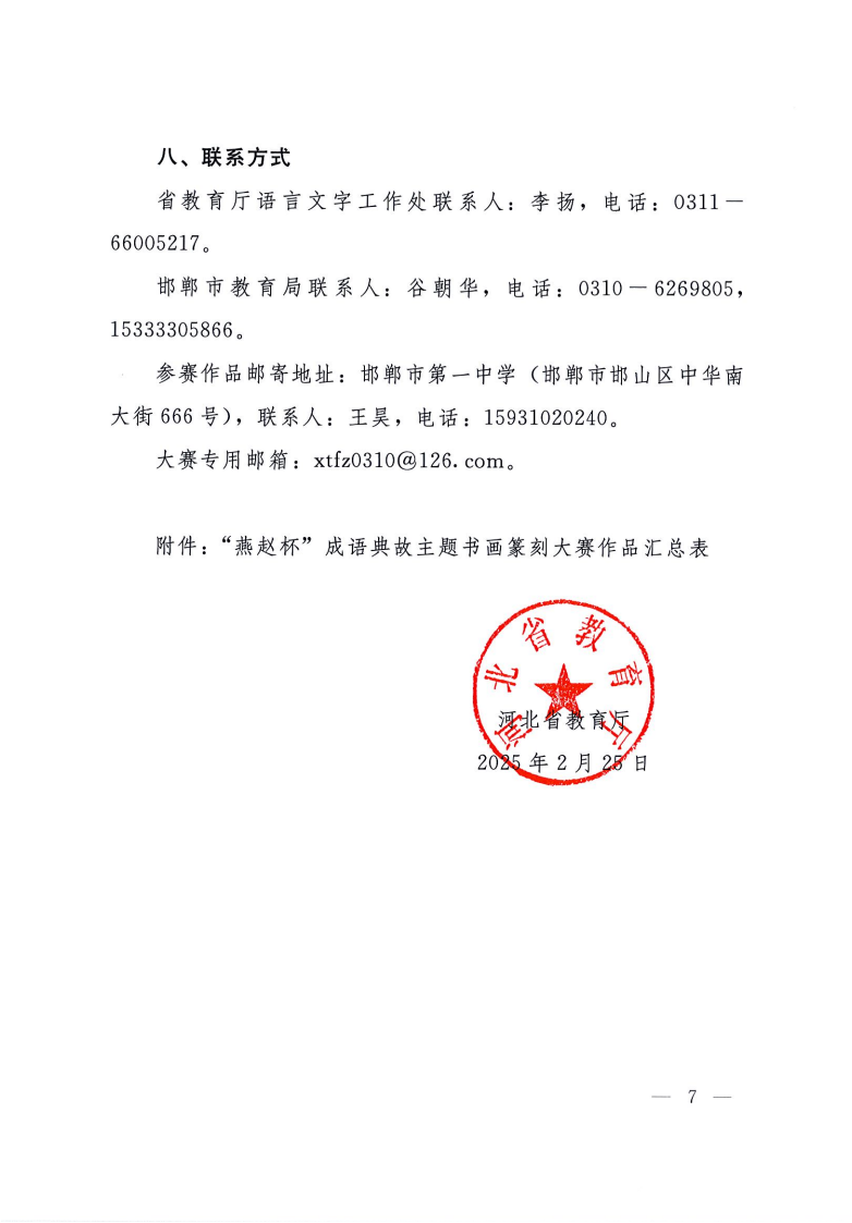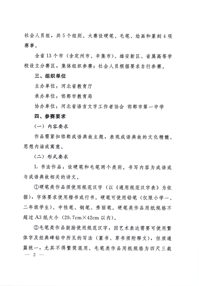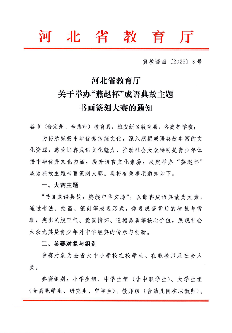 关于转发河北省教育厅《关于举办 “燕赵杯” 成语典故主题书画篆刻大赛的通知》的通知