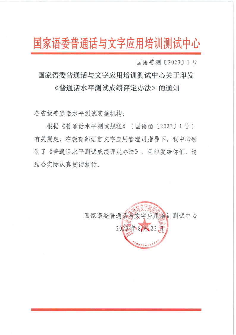 国家语委普通话与文字应用培训测试中心关于印发《普通话水平测试成绩评定办法》的通知