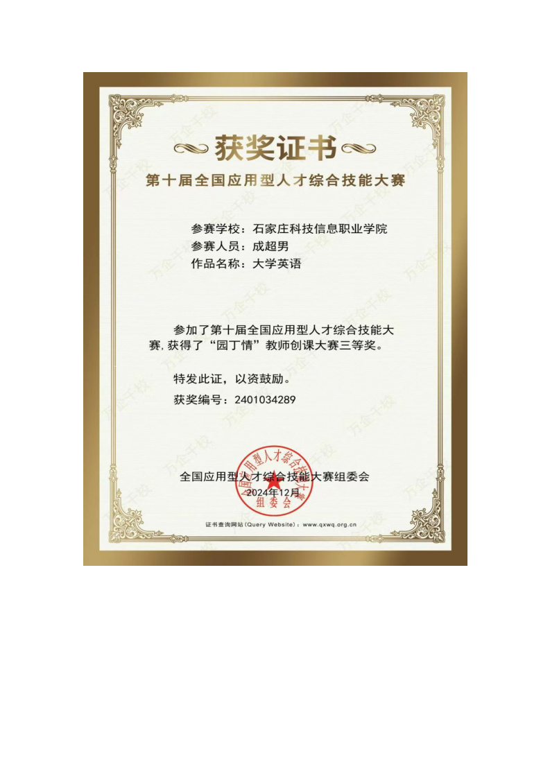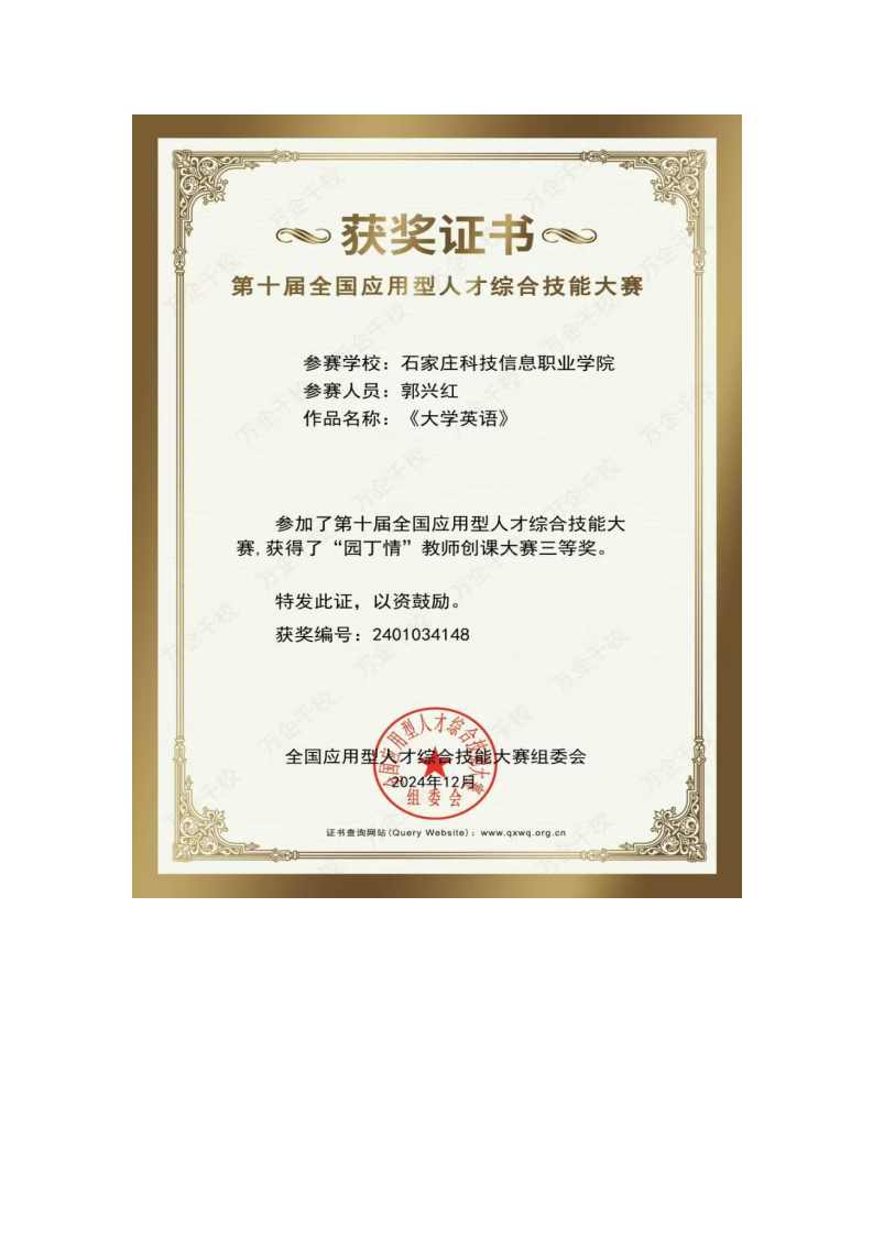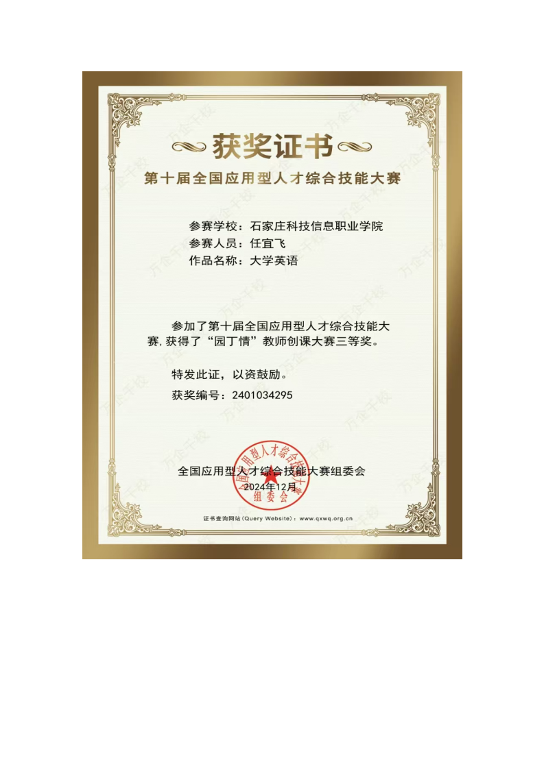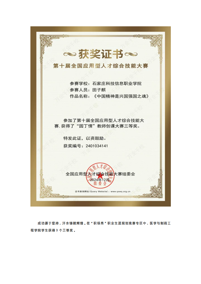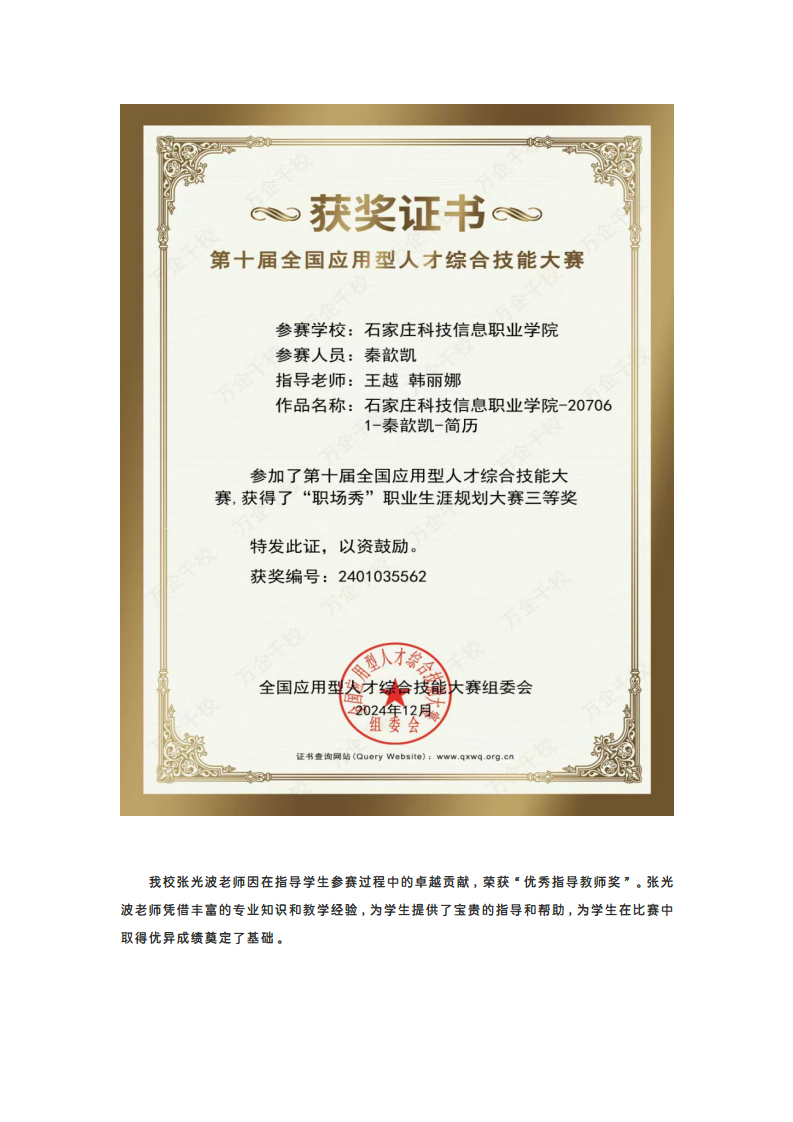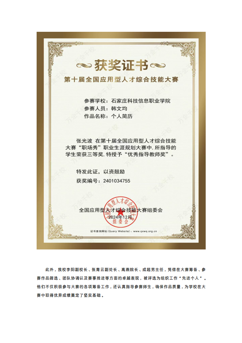 喜报!学校师生在第十届全国应用型人才综合技能大赛中喜获多个奖项!