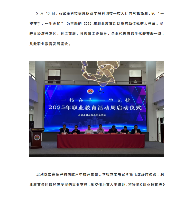 一技在手 一生无忧——石家庄科技信息职业学院2025年职业教育活动周隆重启动