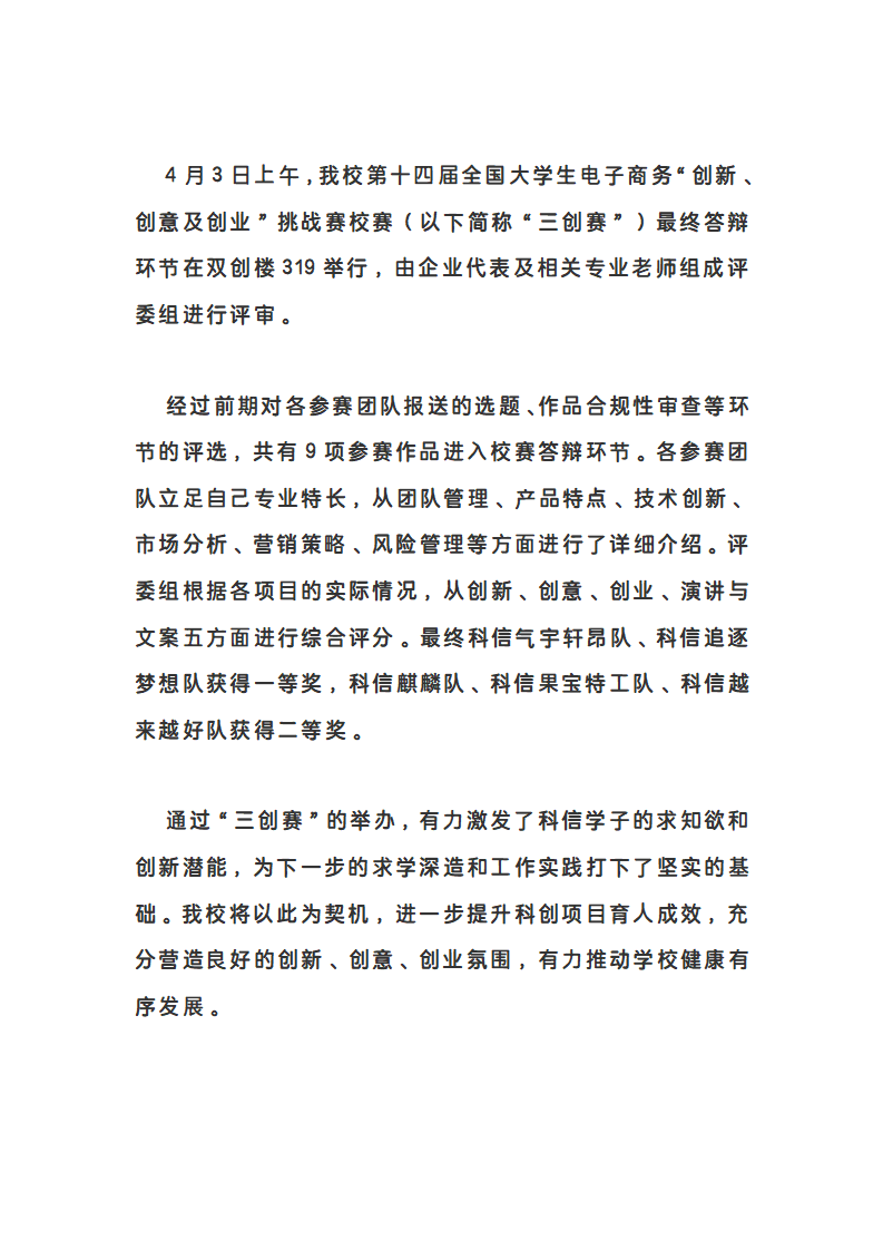 第十四届全国大学生电子商务“创新、创意及创业”挑战赛 石家庄科技信息职业学校校赛圆满落幕