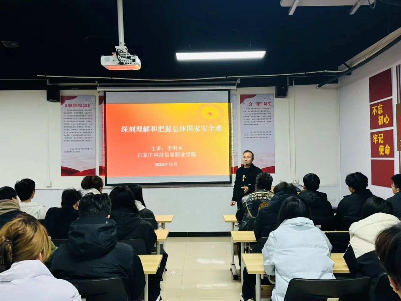 党的二十大作出全面加强国家安全教育的重大决策部署,在复杂严峻的国家安全形势下,加强大学生国家安全教育是维护和塑造国家安全的重要基础,也是培养和造就新时代好青年的应有之义。为了加强大学生安全教育,增强学生安全意识,推进国家总体安全观学习,2024年11月19日下午,马克思主义学院在学生一站式服务大厅举办了安全教育专题学术讲座,讲座由马克思主义学院李明乡主任主讲,全校100余名师生参加了讲座。李主任以深刻理解和把握总体国家安全观为主题,从坚持总体国家安全观的逻辑必然性、总体国家安全观的内涵、总体国家安全观的战略体系与思维方法、总体国家安全观视域中的意识形态安全、新时代总体国家安全观的现实意义等五个方面展开阐述,着重分析了总体国家安全观的内涵、当前我国意识形态领域安全风险。强调当代大学生要牢固树立国家安全意识,严格保守国家秘密,维护国家主权和领土完整。积极抵制国内外敌对势力的渗透,防止邪教、非法宗教势力的侵害,同民族分裂行为作坚决斗争。坚定爱国主义信念,培养爱国主义精神,关心国家大事,自觉提高政治觉悟,维护民族团结和国家安全。